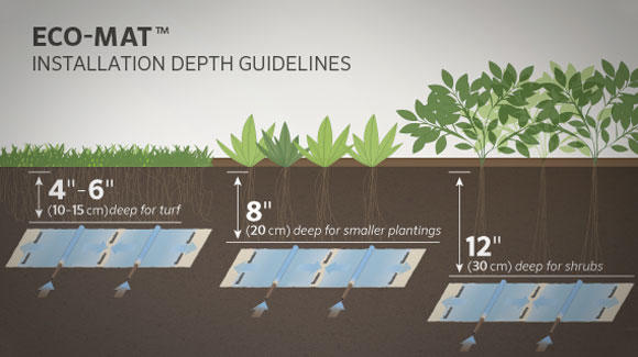 Dizajniran da odgovara različitim područjima koji se teško navodnjavaju, Eco-Mat koristi specijalno projektovanu kombinaciju linijskih kapajućih cevi I platna, koji jednako raspoređuju vodu ispod površine tla. Eco-Mat se sastoji od Hunter specijalnih kapajućih cevi umotanih u platno I pričvršćenih na specijalno platno.Eco-Mat se tada postavlja u zemljište koje treba navodnjavati, direktno ispod biljnog materijala. Kada se voda pusti kroz sistem, cevi se pune I zasićuju Eco-Mat. Ovim načinom navodnjavanja nikada nema vode na površini tla, i prometne površine kao što su zabavni parkovi, gradski parkovi ili komercijalni kompleksi se mogu koristiti tokom celog dana bez potrebe za zatvarenjem prostora radi površinskog navodnjavanja ili brige o vandalizmu.